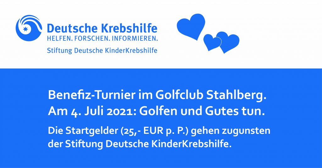 Zum Abschluss der sommerlichen Golfwoche steht am Sonntag das Turnier der Stiftung Dt. KinderKrebshilfe auf dem Programm. Die Benefiz-Turnierserie wird im Jahr 2021 zum 40ten mal bundesweit ausgespielt und auch die Stahlberger haben die Möglichkeit, mit ihrer Teilnahme Gutes zu tun!